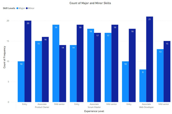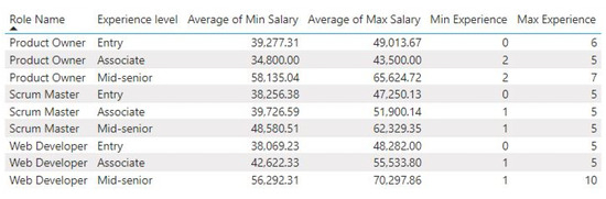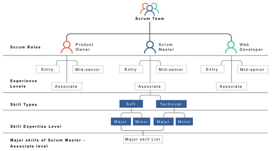 The web developer role has been chosen as the developer role along with the other two main scrum roles. There are no specific roles for specific activities such as designing and testing in the scrum development team. Also, team members work cross-functionally and equally on each task: designing, development, and testing. Furthermore, scrum is well known among web application developers [28]. The study only considered three levels due to the limited time and the data availability. According to a study, the highest job post values were identified as 57%, 21%, and 20% for associate, entry, and mid-senior, respectively, in LinkedIn for human resource roles [29]. Another study [30] highlighted LinkedIn experience levels, but it considered three levels: entry, mid-level, and top-level (director and executive). In this study, fewer job posts were available for internship, director, and executive categories. Therefore, entry, associate, and mid-senior levels were considered in this study.