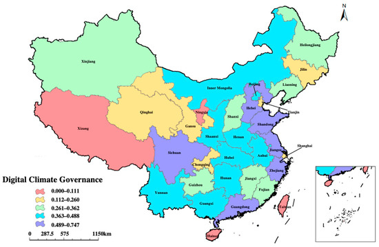 Spatial distribution of digital climate governance in China.