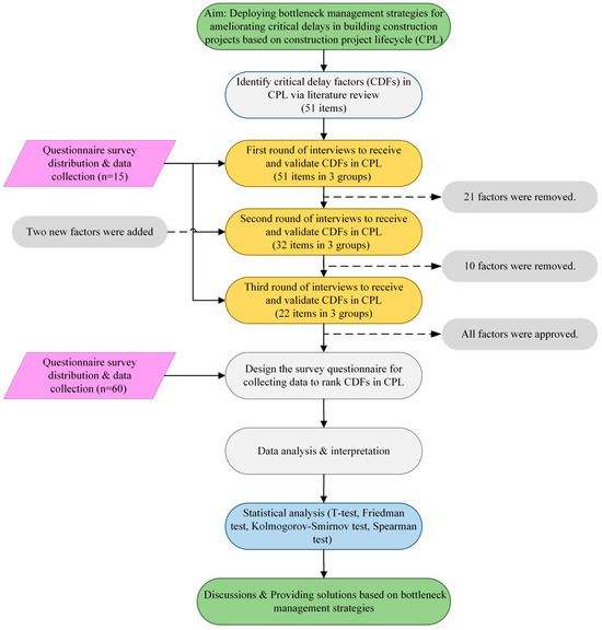 The current investigation uses a descriptive post-event technique. Descriptive research includes a collection of techniques aimed at describing the circumstances or phenomena being investigated. In post-event research, the researcher examines the reasons for the event based on the dependent variable [53]. The technique of this study is post event since it also identifies and analyses CDFs in the CPL in a developing country (Iran) and their influence on project completion. Thus, the present research thoroughly examined studies on the subject to determine the main causes of delays in building construction projects. The data collection method consisted of an empirical questionnaire using a 5-point Likert scale and semi-structured interviews administered to fifteen experts, including contractors, consultants, and employers (similar to Tamošaitienė et al., [54]). The number of participants is generally around 15 to 20 [55]. Most of the time, sampling is based on a used target, and agent samples are not important, but the quality of the panelists is more important than the number [56].