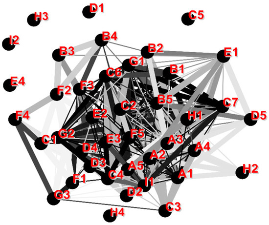Network density within a single industry is a key metric that measures the intensity of connections among participants within a specific strategic emerging industry [69]. This metric reflects the density of the internal network, i.e., the degree of interconnectedness and cooperation among participants (Table 2). The calculation of industry network density is as follows: