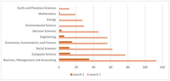 - Studies from subject areas not directly relevant to the scope of the review, such as energy, environmental sciences, medicine, and arts. This step helped to maintain the focus on the core research domains.