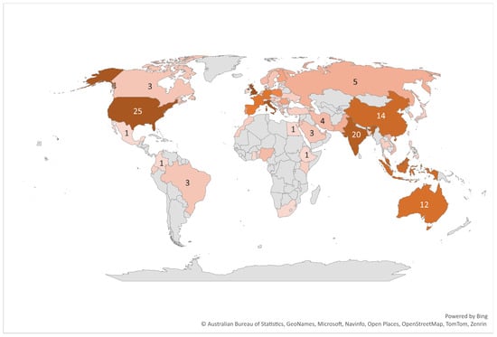 The number of publications based on countries [Map illustration created using Microsoft Excel as open access under the license of Australian Bureau of Statistics, GeoNames, Microsoft, Naviinfo, Open Places, OpenStreetMap, TomTom, and Zenrin].