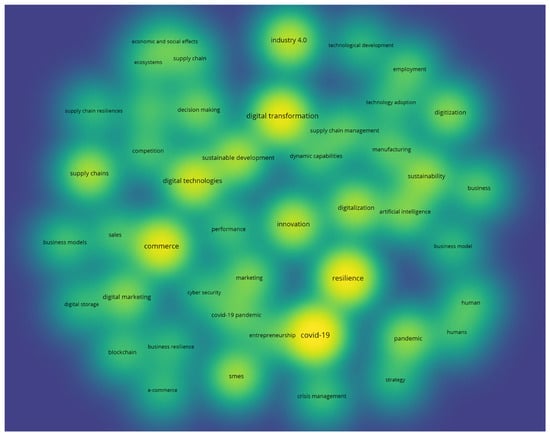 Density visualization of key themes in digital transformation and business resilience research using VOSviewer [].