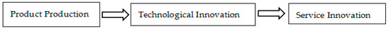 An innovation strategy is a strategic choice made by an enterprise to maintain its competitive advantage and long-term development in the face of fierce market competition. For the study of innovation strategy, Arrow (1962) and others mainly focused on innovation activities at the level of technology and believed that enterprises needed to make long-term plans for the choice of technological development paths in order to enable them to maintain a relatively favorable position in the competition for innovation [35]. Utterback believed that the technological innovation of enterprises in market competition directly determines the success or failure of the competition [36]. Therefore, the competition strategy of enterprises has a very close relationship with their technological innovation strategy, and they often are adopted at the same time. For manufacturing enterprises, promoting manufacturing servitization not only means the transformation of enterprises from traditional product centers to service centers but also has a positive effect on their own technological innovation abilities. Manufacturing industries are all technology-intensive industries, and at the same time, they are also the industries where technological innovations are most widely applied. Therefore, it is of great significance to develop service innovations that are compatible with the technological innovations of the manufacturing industry [37].