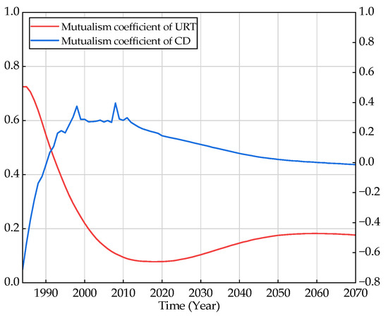The stability analysis unveiled that mutualism coefficients determine the trends of the URT and UD. Simulating the scenarios produced by different coefficients can provide decision support for policymakers. Different scenarios will be specifically addressed in the Discussion section.