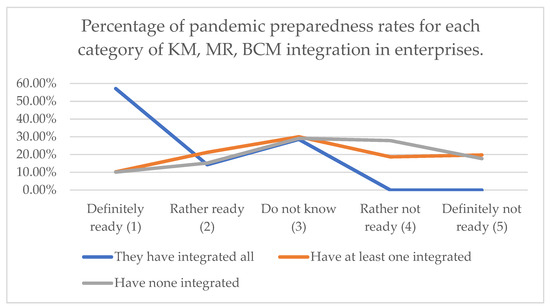 The hypothesis formulation was inspired by the results of our previous research [66]. When answering question no. 4, respondents could choose several options, including other management systems. The answers were subsequently divided into three categories for statistical analysis, according to whether the companies have implemented all three systems (CM, RM, and BCM), at least one of the three, or none of them (Table 8).