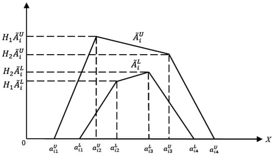 In the following, the upper trapezoidal membership function and the lower trapezoidal membership function of the interval type-2 fuzzy set are provided in Figure 2 [].