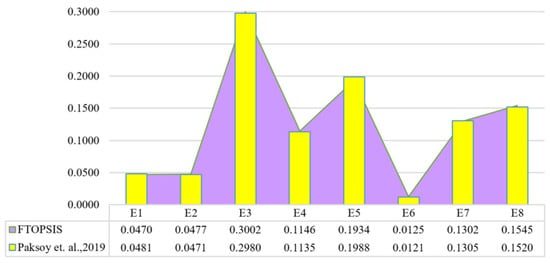 - Step 6: After creating the weighted normalized fuzzy decision matrix, the Fuzzy Positive Ideal Solution (FPIS ) and the Negative Ideal Solution (FNIS ) are calculated using Equations (24) and (25):Here, . In other words, there are (1,1,1) and (0,0,0) represent the values for the decision criteria, respectively [].