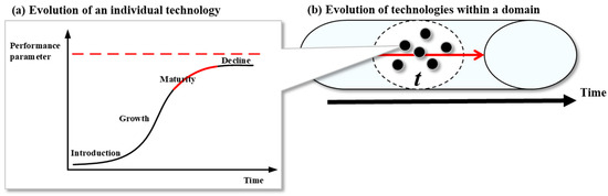 (a) Evolution of an individual technology can be described by common assessment methods like Gartner’s hype cycle [5]. (b) Evolution of technologies within a domain is more complex and poorly understood.