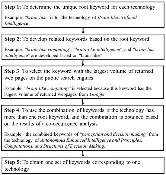 Then, we extract the representative keywords from the 452 technologies according to the procedure shown in Figure 3.