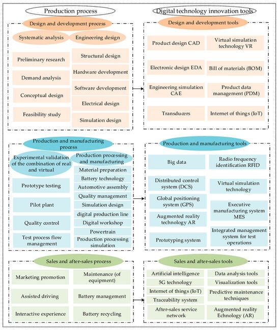 Digital technology innovation in new energy vehicle companies by production process.