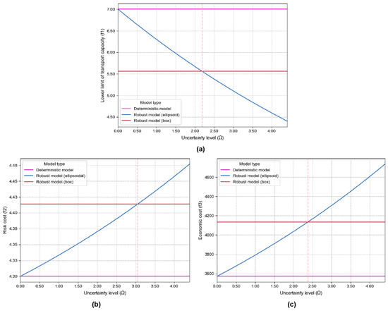 Emergencies, such as earthquakes, hurricanes, human-made attacks, etc., usually result in urban infrastructure systems’ damage, as well as the severe disruption of normal social order in affected areas [1,2,3,4,5]. Affected areas often face chaotic allocation of emergency materials for disaster victims, which further exacerbate the negative impacts of emergencies [6,7]. In order to reduce the impact of emergencies, a resilient emergency support system based on multi-objective decision-making (MODM) methods is essential, and reasonable emergency facilities’ locations and transportation of emergency materials are essential prerequisites for the effectiveness of the emergency support system [6,8]. Emergencies can disrupt the transportation network capacity. Due to the unpredictability of emergencies, decision-makers may not be able to obtain a certain value or probability distribution for the uncertain capacity of the transportation network. Instead, they can only predict the interval range of the uncertain capacity [9]. At the same time, the existing models fail to account for the correlation of the transportation network capacity, which not only deviates from realistic scenarios but also makes it impossible to directly apply the ellipsoidal uncertainty set or polyhedral uncertainty set to describe the uncertainty of the transport capacity. Consequently, the models are limited to using the box uncertainty set or the finite scenarios robust decision-making [10,11,12,13], making the models too conservative and unable to adjust the range of the transport capacity uncertainty set.