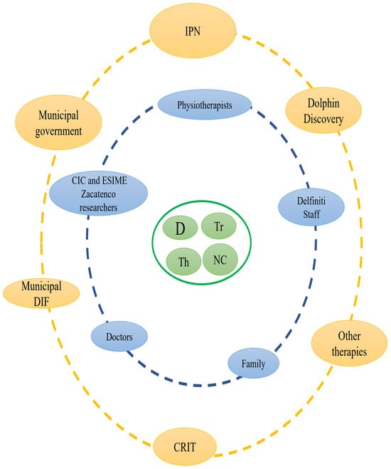 Unstructured problem situation (where D = dolphin, Tr = trainer, Th = therapist, and NC = neurodivergent children, IPN = National Polytechnic Institute (IPN, Instituto Politécnico Nacional), CRIT = Teletón Children’s Rehabilitation Center (CRIT, Centro de Rehabilitación Infantil Teletón), Municipal DIF = Municipal System for the Integral Development of Families (DIF, Sistema Municipal de Desarrollo Integral de las Familias, CIC and ESIME Zacatenco Researches = Researchers from the Research Center for Computing (CIC, Centro de Investigación en Computación) and Higher School of Mechanical and Electrical Engineering (ESIME, Escuela Superior de Ingeniería Mecánica y Eléctrica) Campus Zacatenco.