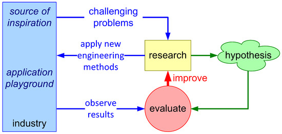 This research was conducted in the company based on an industry-as-laboratory approach [24,25]. This approach entails performing practical research in an industrial context, providing new research data to the body of knowledge. The main condition for using this approach is that research can benefit from collecting data in an industrial context. See Figure 4 for an illustration of the industry-as-laboratory approach. We replace the hypothesis in Figure 4 with a set of research questions. Also, this research used the action research strategy through active collaboration in the industry to solve an identified problem [26]. In the company, one of the researchers had access to the system integration test group, relevant SMEs (testers and analysts), and historic test data. The nature of the research and the mentioned industry connection provided a rationale for using the industry-as-laboratory approach.