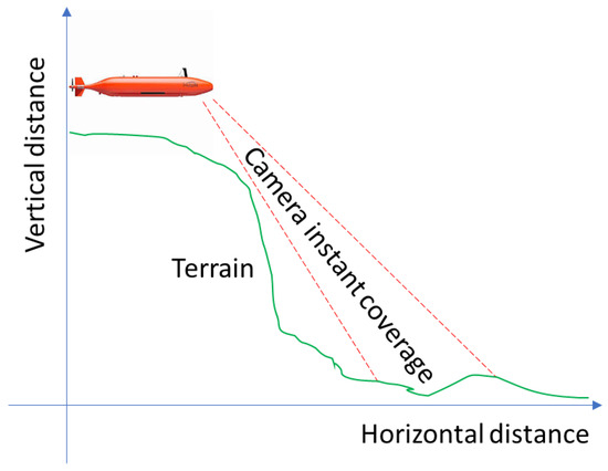 The test result analysis revealed detrimental emergent behaviors like failure to plan missions, running out of fuel, not covering steep terrain areas, and drifting away from the planned trajectory [29]. See Figure 6 for an emergent behavior example where the AUV camera does not cover an area with steep terrain.