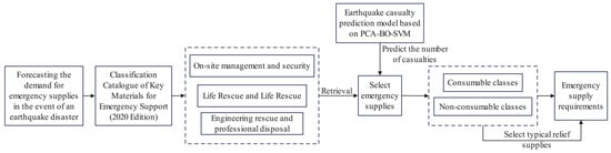 The organization of this study is structured as follows: Section 2 presents the key steps and processes involved in the overall research. Section 3 describes the principles used to construct the PCA-BO-SVM model. Section 4 is dedicated to the experimental part, where the developed model is utilized for casualty prediction and result analysis. Section 5 focuses on estimating the demand for emergency materials. Finally, Section 6 provides the conclusions and future outlook of this study.