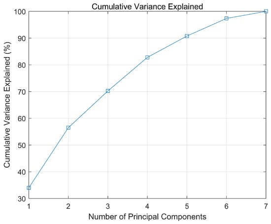 In Equation (7), refers to the n principal component, and the contribution rate and cumulative contribution rate of the eigenvalue can be calculated as described in Equations (8) and (9):