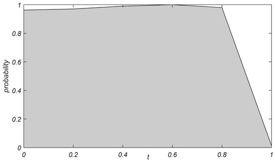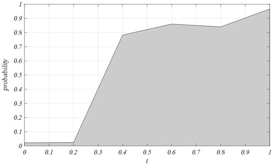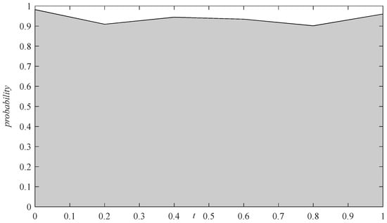 Figure 9 illustrates the average adoption rate for each evolutionary game system with varying quality cost factors, , where the ordinate represents the adoption rate of blockchain technology and the abscissa represents the quality cost coefficient . When , the technology adoption rate in the regional logistics service supply chain fluctuates steadily within the interval [0.9, 1]. The primary reason is that when the quality cost coefficient in the blockchain environment is low—meaning that the cost of improving the logistics service quality level is less than the income it generates—providers and integrators are inclined to adopt blockchain technology. Conversely, when , the technology adoption rate drops sharply, ultimately converging to 0.0044. This high quality cost coefficient, , indicates that the cost of enhancing the logistics service quality level exceeds the income generated, resulting in a herding effect among game players, which causes the technology adoption rate to decrease exponentially. In summary, as the quality cost coefficient of the regional logistics service supply chain gradually increases, the technology adoption rate for providers and integrators fluctuates steadily within a higher range, and upon reaching a certain critical value, the system adoption rate decreases exponentially.