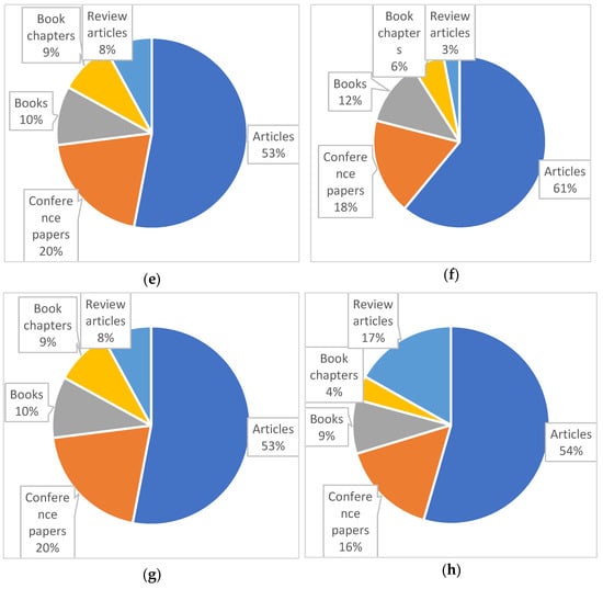 The database was limited in the preliminary stage to 20,000 publications (according to Table 3 and Figure 5), from which only the following types of publications with an occurrence frequency ≤ 1 were selected: articles, conference papers, books, book chapters, and review articles.