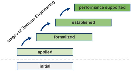 - Wilke, D.; Pfeifer, S.A.; Heitmann, R.; Anacker, H.; Dumitrescu, R.; Franke, V. Implementation of Systems Engineering: A maturity-based approach. In Proceedings of the 2022 IEEE International Symposium on Systems Engineering (ISSE), Vienna, Austria, 24–26 October 2022; pp. 1–7. [Google Scholar]