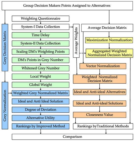 Despite efforts to ensure that weights are derived from System-2 thinking, there remains inherent uncertainty in subjective group decision-making. This research applies Grey Systems Theory (GST) to manage the uncertainty that may arise when groups of DMs assign weights through a more deliberative process, as is required for solving Multi-Criteria Decision-Making (MCDM) problems. The uncertainty inherent in group decision-making is effectively addressed using GST. Deng [9] proposed GST as a bridge between complete and incomplete information. In this framework, a “white system” represents a situation where all information is fully known, while a “black system” refers to one where information is entirely unknown. Grey systems lie between these two extremes, where some information is known, yet uncertainty persists [10,11].