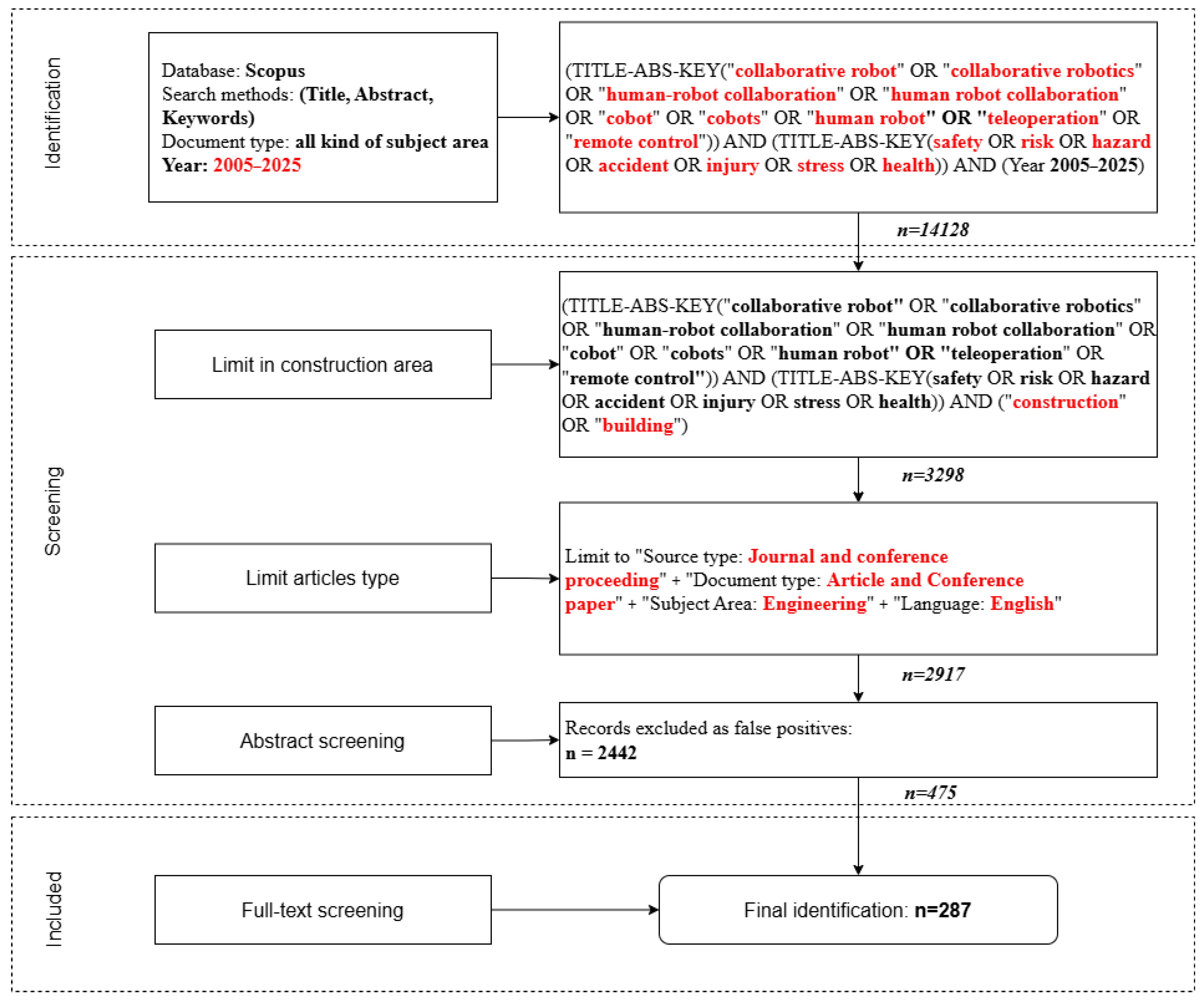 | (2) Hazard analysis and risk assessment | #1 “Risk assessment” | “safety risk”, “monitoring” | Okpala et al., 2023 [14]; Zhang et al., 2023 [5]; Wang et al., 2025 [61]; Sun et al., 2023 [11]; Nnaji et al., 2023 [62] |