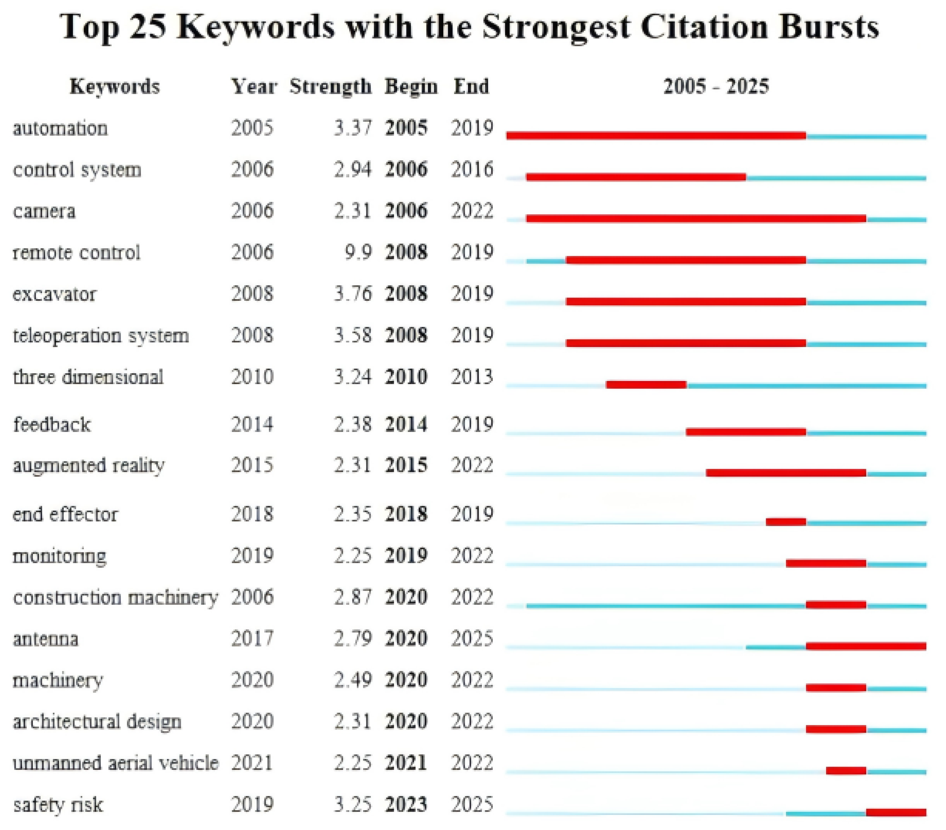 | 6 | 25 | 2015 | 0.986 | efficiency improvement: automation; organizational structure; human–robot team; intelligent construction system, improving remote operability, situational awareness, MR. |
