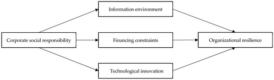 Resilient enterprises can achieve rebound and recovery and can even surpass previous performance levels in the face of crisis events [19]. To facilitate rebound and recovery, enterprises must anticipate environmental changes before a crisis occurs, thereby enabling proactive risk management and prevention of unforeseen disruptions. During a crisis, rapid response is critical to mitigate risks and absorb external pressures. The ability of an organization to not only heal but also advance, eventually gaining a competitive edge and reversing a take-off, is a sign of post-crisis surpassing [20]. In this process, enterprises must first establish a robust information environment to facilitate seamless communication with stakeholders. This enables early warnings at the onset of crises, timely responses during crises, and leveraging informational advantages for strategic development post-crisis. Secondly, financing capacity significantly influences an enterprise’s risk response capability. Adequate financial resources are essential for managing crises effectively and organizing post-crisis operations, thereby enhancing organizational resilience. Finally, in the face of evolving operating environments, enterprises should proactively adapt and innovate to improve their flexibility in crisis management and achieve sustainable long-term development. Actively fulfilling social responsibilities can greatly enhance information processing efficiency, strengthen financial resource acquisition, and accumulate innovation potential, all of which contribute significantly to cultivating organizational resilience. Based on these considerations, this study examines the mechanisms through which corporate social responsibility impacts organizational resilience via three key pathways: improving the information environment, alleviating financing constraints, and boosting technological innovation.