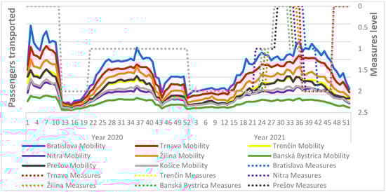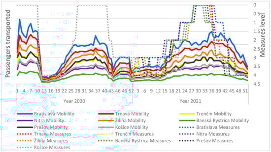 - Štefancová, V.; Čulík, K.; Abramović, B.; Pálková, A. Restriction of mobility due to follow-up measures caused by COVID-19. In TRANSBALTICA XIII: Transportation Science and Technology; Lecture Notes in Intelligent Transportation and Infrastructure; Prentkovskis, O., Yatskiv, I., Skačkauskas, P., Maruschak, P., Karpenko, M., Eds.; Springer: Berlin/Heidelberg, Germany, 2023; pp. 627–633. [Google Scholar] [CrossRef]