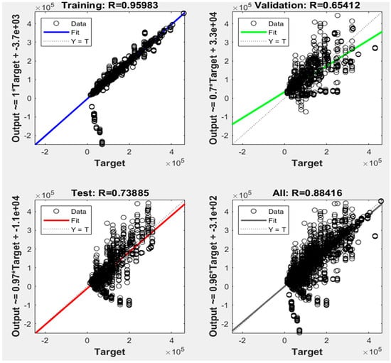 Another methodological limitation is the lack of a formal benchmark comparison with simpler time-series models such as ARIMA or regression. Although these approaches were considered and dismissed due to pronounced non-stationarity and nonlinear demand shocks, their explicit inclusion as baseline models would make the argument for NARX’s superiority more robust. The notable drop in predictive accuracy from the training set (R ≈ 0.96) to the validation and testing sets (R ≈ 0.65–0.74) also indicates a potential risk of overfitting that should be examined more systematically.
