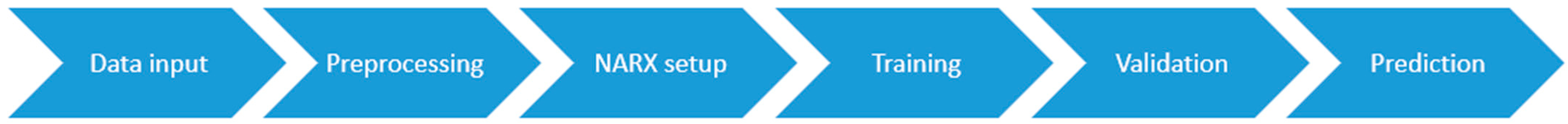 The methodological approach of this study integrates the systematic collection and transformation of data with advanced time-series modelling techniques. First, qualitative and quantitative data on rail passenger mobility and pandemic measures were gathered and harmonized into a unified database. Then, seasonality was analysed and removed to obtain stable input variables. These prepared datasets were subsequently applied to a Nonlinear Autoregressive model with Exogenous Inputs (NARX), a neural network–based technique well-suited for forecasting non-stationary and nonlinear time series. This process ensured that the modelling framework is robust, data-driven, and capable of reflecting the dynamic effects of government restrictions on passenger demand.