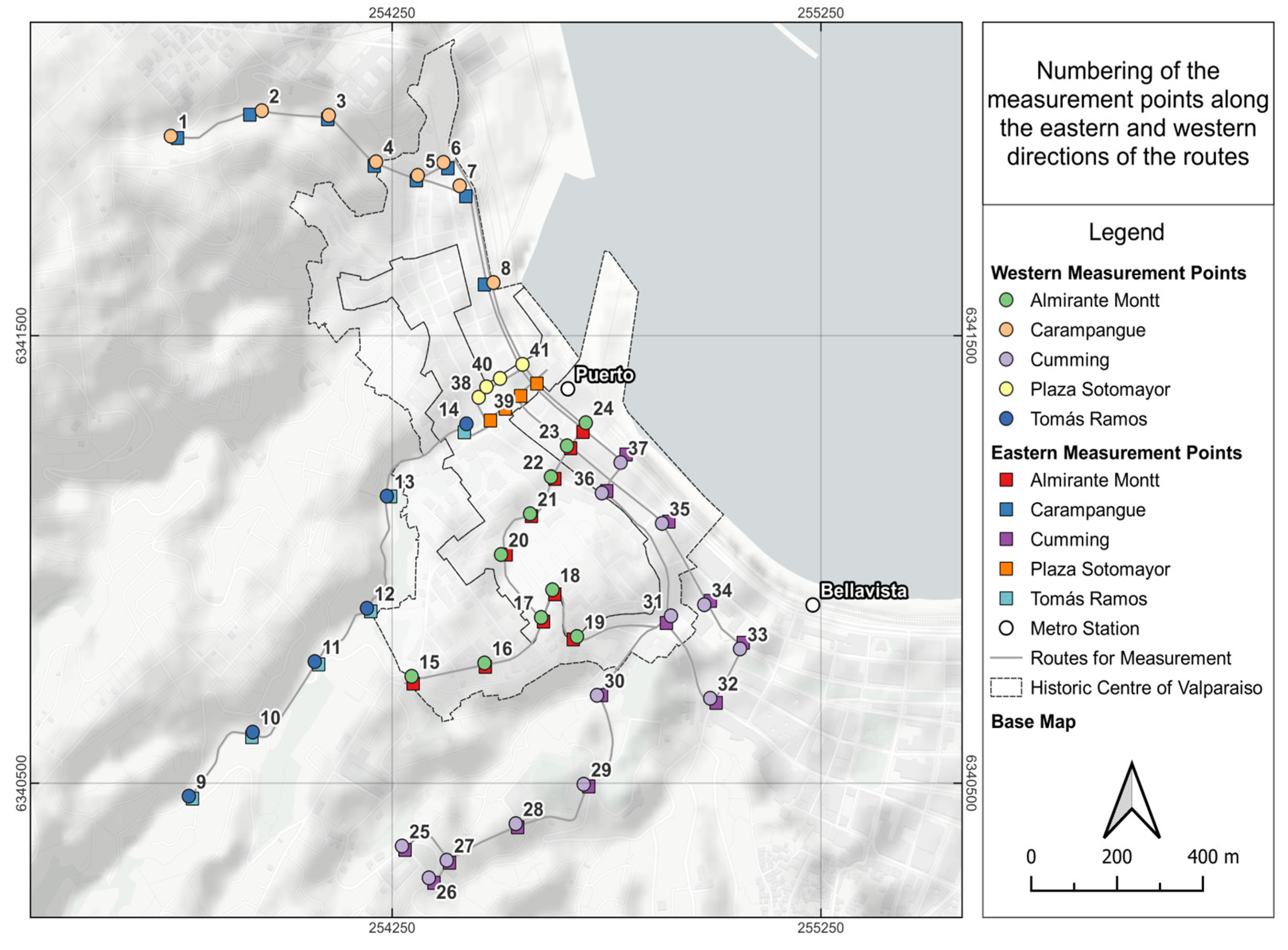 26]. For these reasons, it is valid to make effort in evaluating potential routes for E-Bikes in the city of Valparaíso, where approximately 94% of the population resides in the hills of the city [
