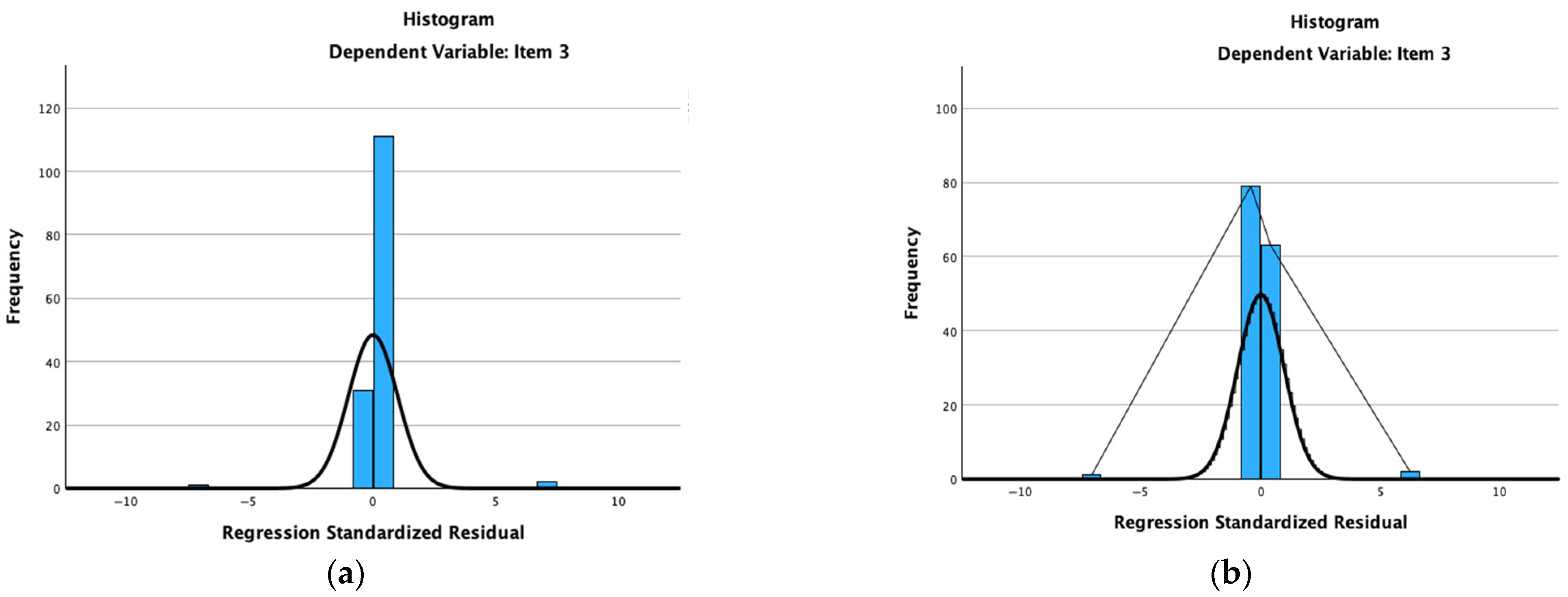 Regression models were tested for multicollinearity using variance inflation factors (VIF) and tolerance values. The obtained VIFs ranged from 1.07 to 3.74, and tolerances from 0.27 to 0.93, all of which fall within conventional thresholds (VIF < 10, tolerance > 0.1). These results indicate that no severe multicollinearity is present in the models.