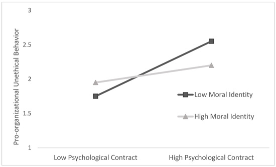Moral identity negatively moderates the relationship between psychological contract fulfillment and unethical pro-organizational behavior.