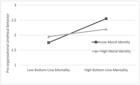 Moral identity negatively moderates the relationship between bottom-line mentality and unethical pro-organizational behavior.