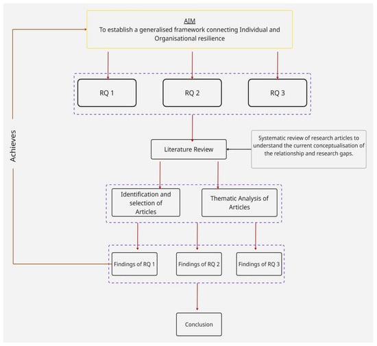 The primary objective of this study is to develop potential conceptual frameworks that explain the relationship between individual resilience (IR) and organisational resilience (OR) by systematically synthesising cross-sector literature. The methodology was, therefore, designed to identify, screen, and analyse relevant studies to clarify the mechanisms and contextual factors that shape how individual adaptive capacities interact with organisational systems to produce resilience outcomes.