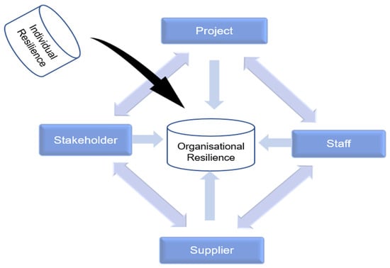 Several scholars have asserted the role of individuals in promoting organisational change [,]. Doe [] argued that resilient organisations are dependent on resilient individuals who can absorb change or uncertainty and regard it as an opportunity for future development. This was in line with Mallak [], who stated organisational resilience requires “people who can respond quickly and effectively to change while enduring minimal stress”. Furthermore, Riolli and Savicki [] also discussed organisational resilience is “built on the foundation of the resilience of members of that organisation”. The study of Coutu [] also revealed that the characteristics of organisational resilience are influenced by resilient individuals, indicating that both share grounds of commonalities. Thus, individual resilience can prove to be significant while analysing organisational resilience.