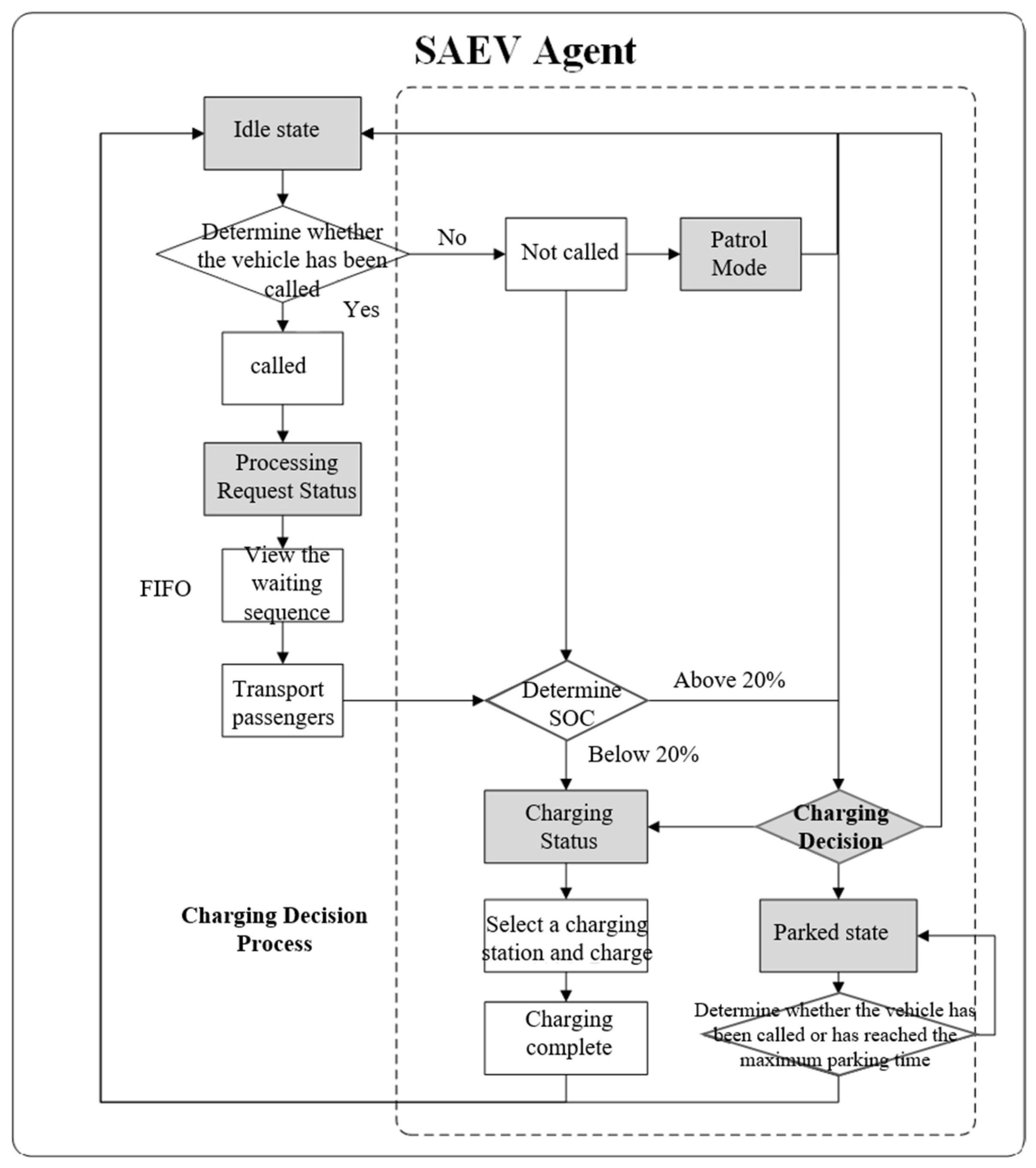 - Charging Protocol. SAEVs adopt a “Full-Charge Departure” policy at charging stations, immediately vacating the station upon reaching full battery capacity.