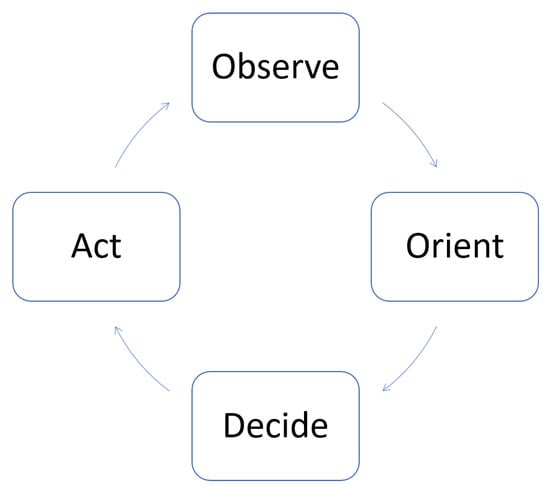 - Révay, M.; Líška, M. OODA loop in command & control systems. In Proceedings of the 2017 Communication and Information Technologies (KIT), Vysoke Tatry, Slovakia, 4–6 October 2017; pp. 1–4. [Google Scholar]