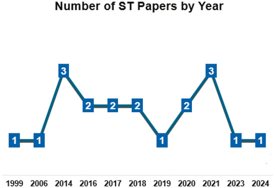 Figure 2 illustrates the timeline of published papers, showing a steady interest in applying ST to HHR. However, it also indicates that, despite this interest, the number of published studies on the topic remains limited.