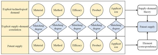 The explicit supply–demand correlation focuses on explicit technological demands of enterprises. Such demands possess a complete structure of five content elements, allowing for point-to-point alignment with patent supply elements at the content level.