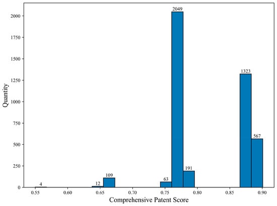 Based on an explicit technological demand case and its corresponding 4318 candidate patents, comparative experiments were conducted to validate the effectiveness of different selection strategies. Four combinations of methods were designed to systematically analyze the contribution of each component to selection quality. Each method was applied to score and rank the 4318 candidate patents, and the top 10 patents under each method were selected for comparative analysis. The results are presented in Table 13, which shows the distribution of comprehensive scores and ranking outcomes for different methods.