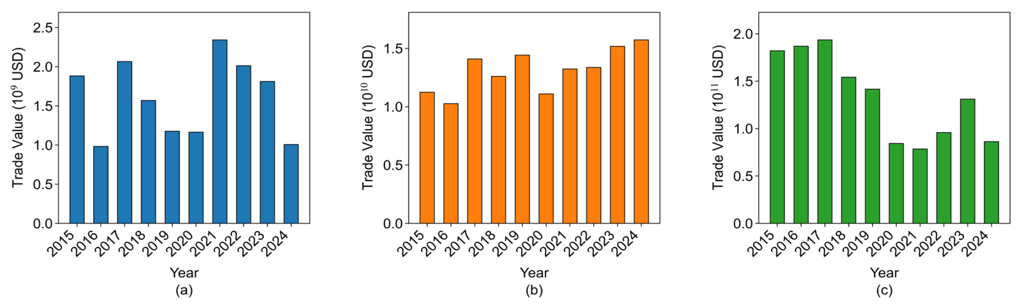 - From 2015 to 2024, the global aircraft trade has exhibited fluctuating patterns, reflecting its cyclical nature. Influenced by trade wars, safety incidents, and the COVID-19 pandemic, trade value for both small and large aircraft has experienced significant volatility. In contrast, the trade of medium-sized aircraft has demonstrated a faster recovery during crises and has maintained a growth trend in recent years.