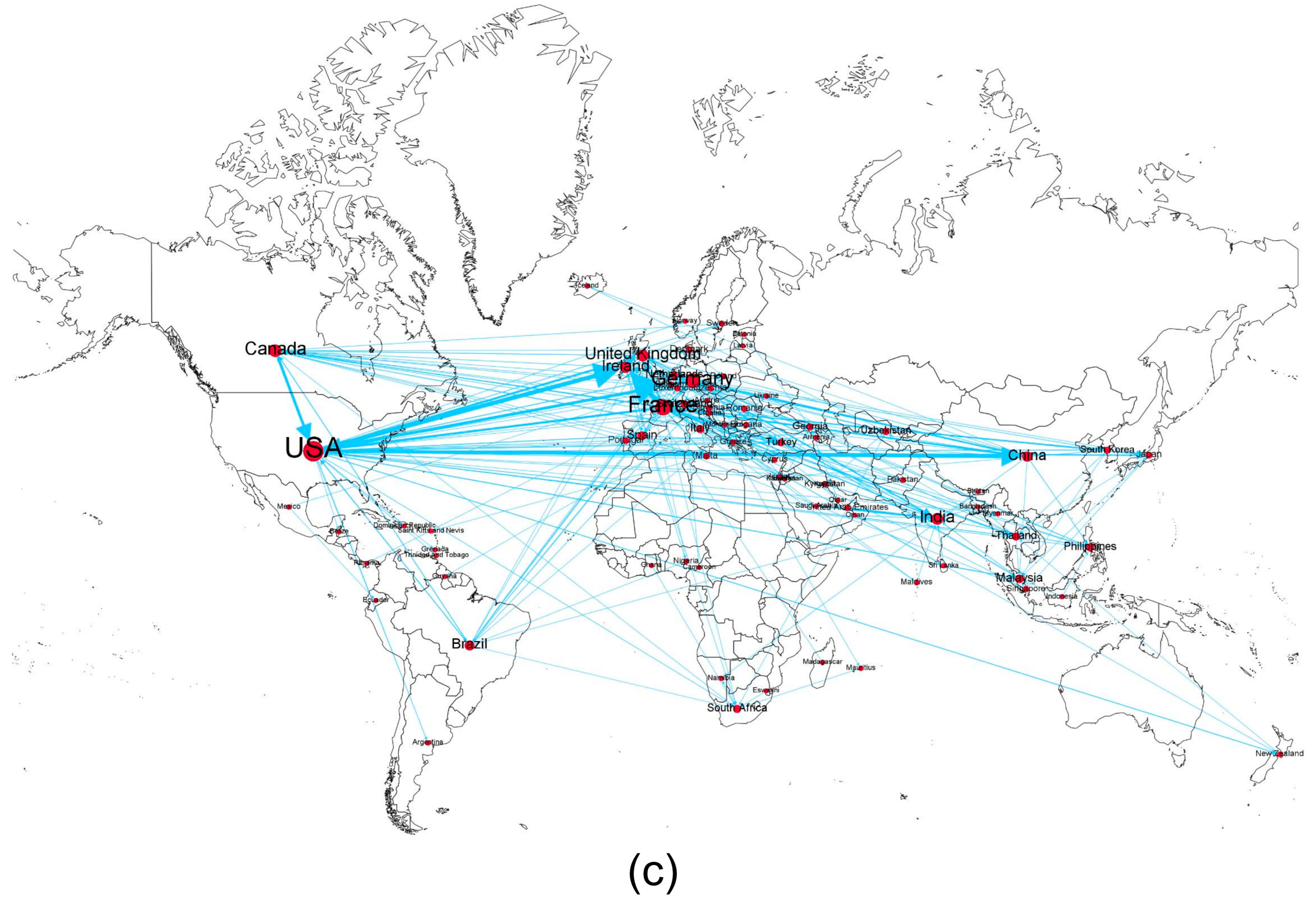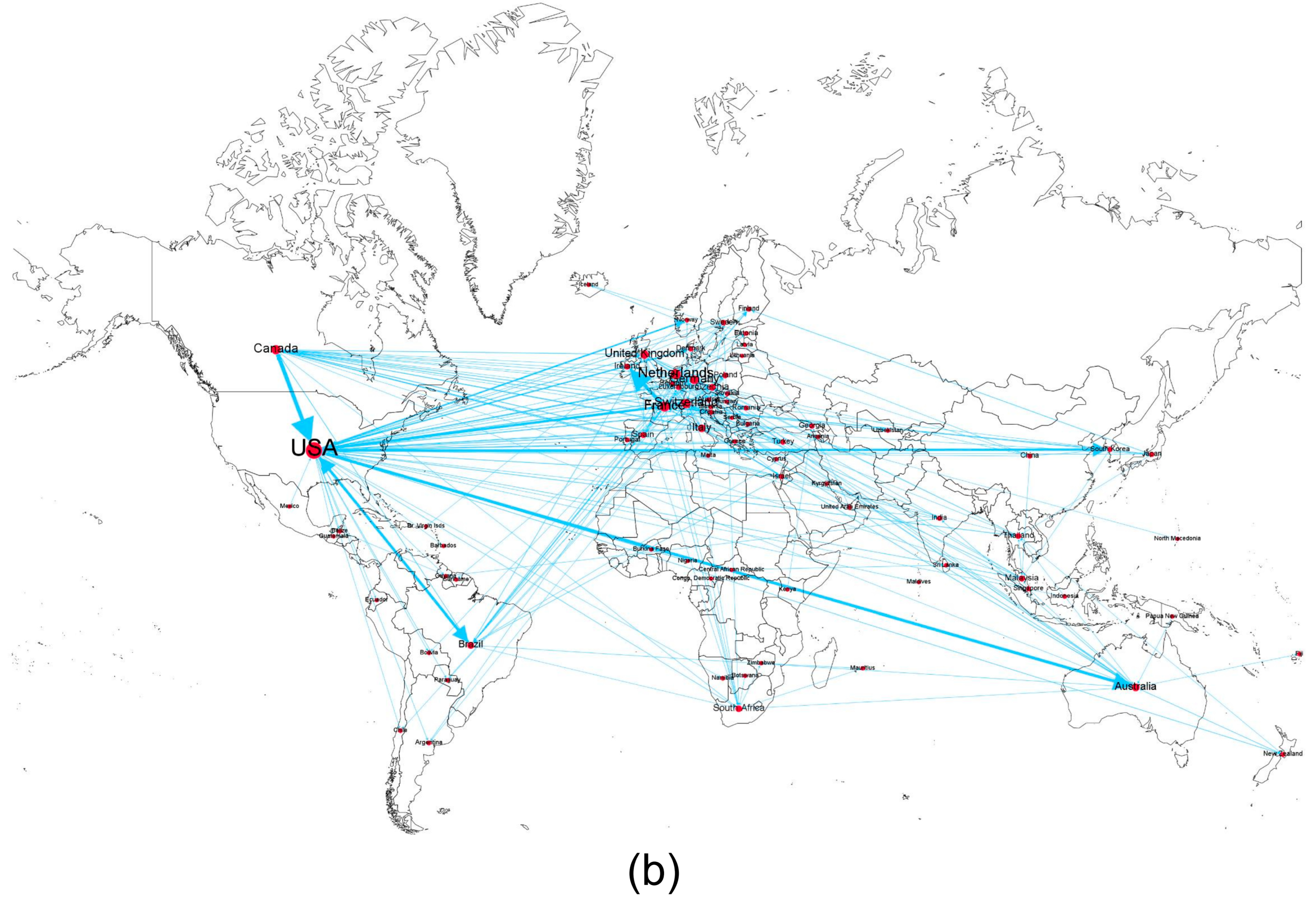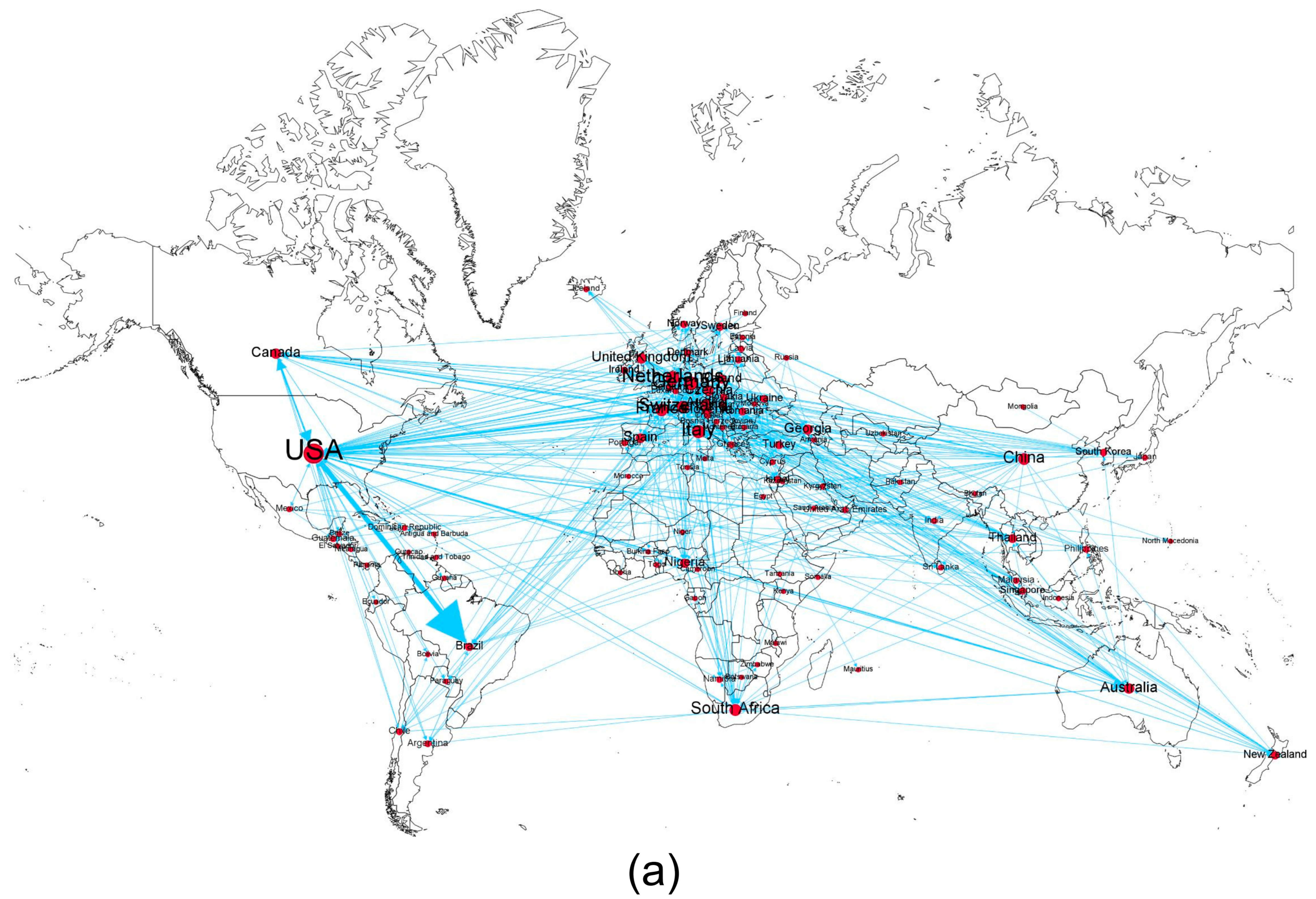 - Li, Y.; Peng, Y.; Luo, J.; Cheng, Y.; Veglianti, E. Spatial-Temporal Variation Characteristics and Evolution of the Global Industrial Robot Trade: A Complex Network Analysis. PLoS ONE 2019, 14, e0222785. [Google Scholar] [CrossRef]