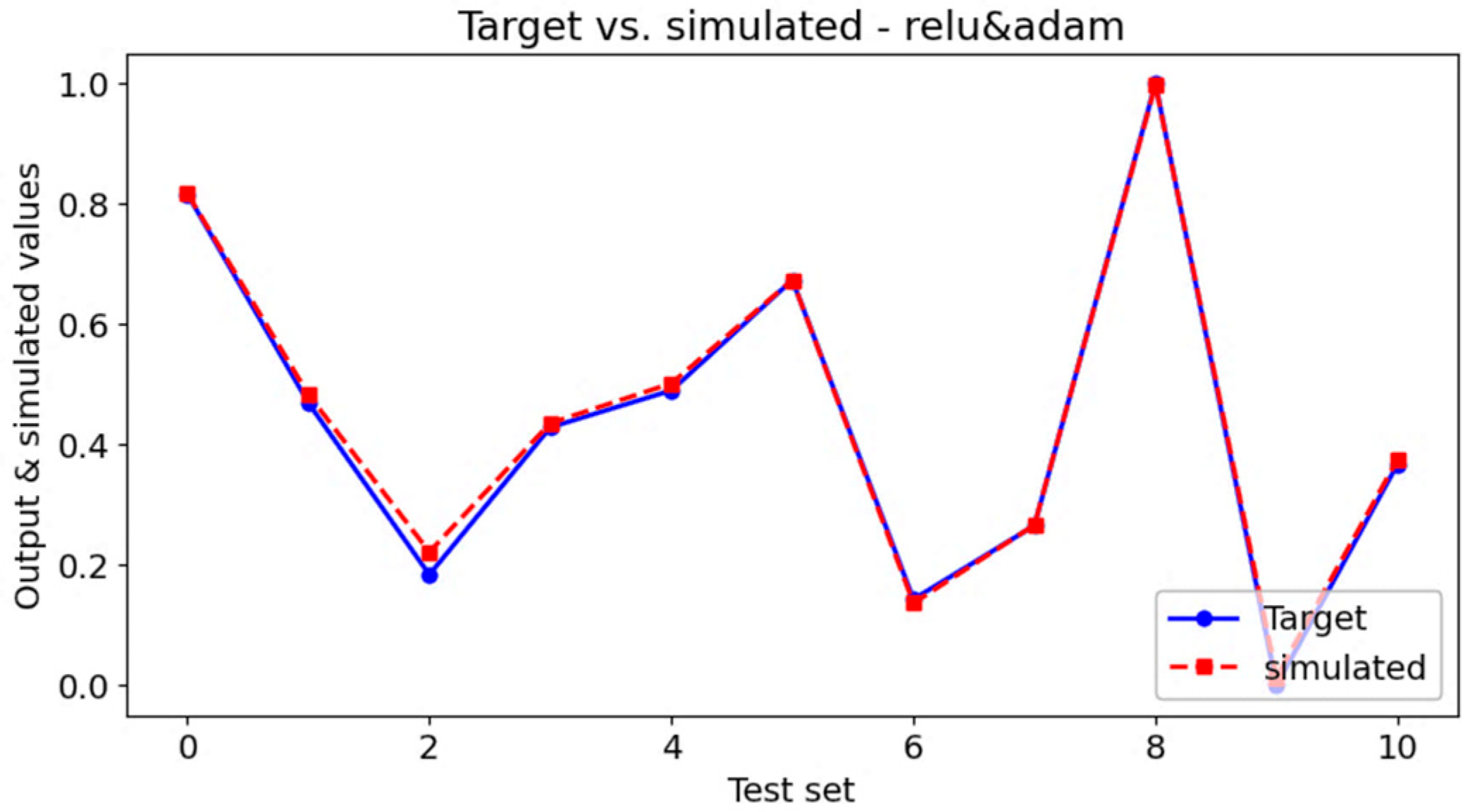 The dataset was divided into training and testing subsets using the parameter test_size = 0.05, which resulted in a testing set containing only a single value. This configuration was necessitated by the limited number of training sets (12) and the authors’ intention to prioritize the training process. Consequently, it was considered that calculating the R2 score for the testing phase would offer limited relevance for evaluating the performance of the artificial neural network (ANN). Also, due to the limited sample size k-fold cross-validation was not applied.