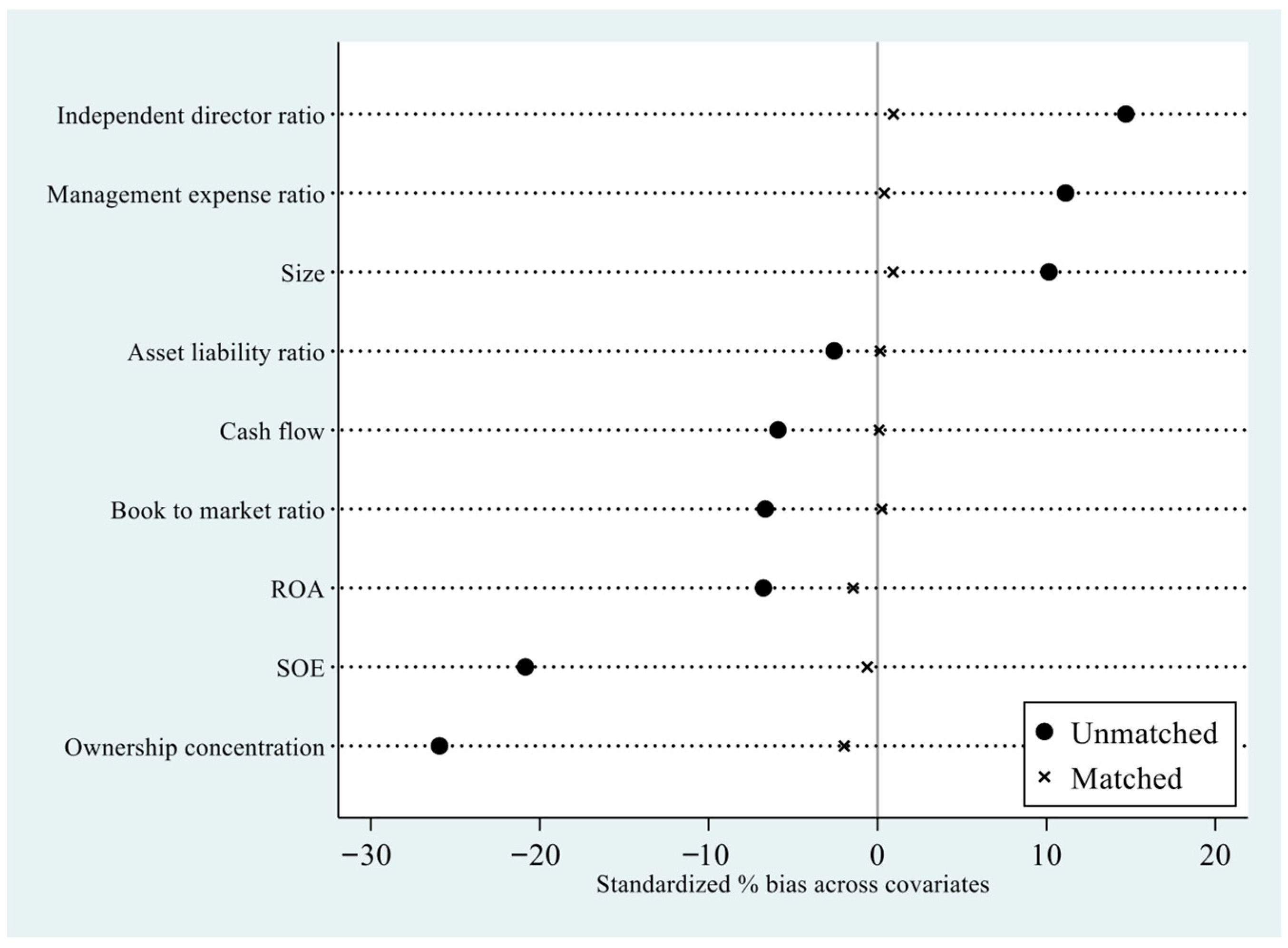 MatchedTreatedControlBias %tp > |t|