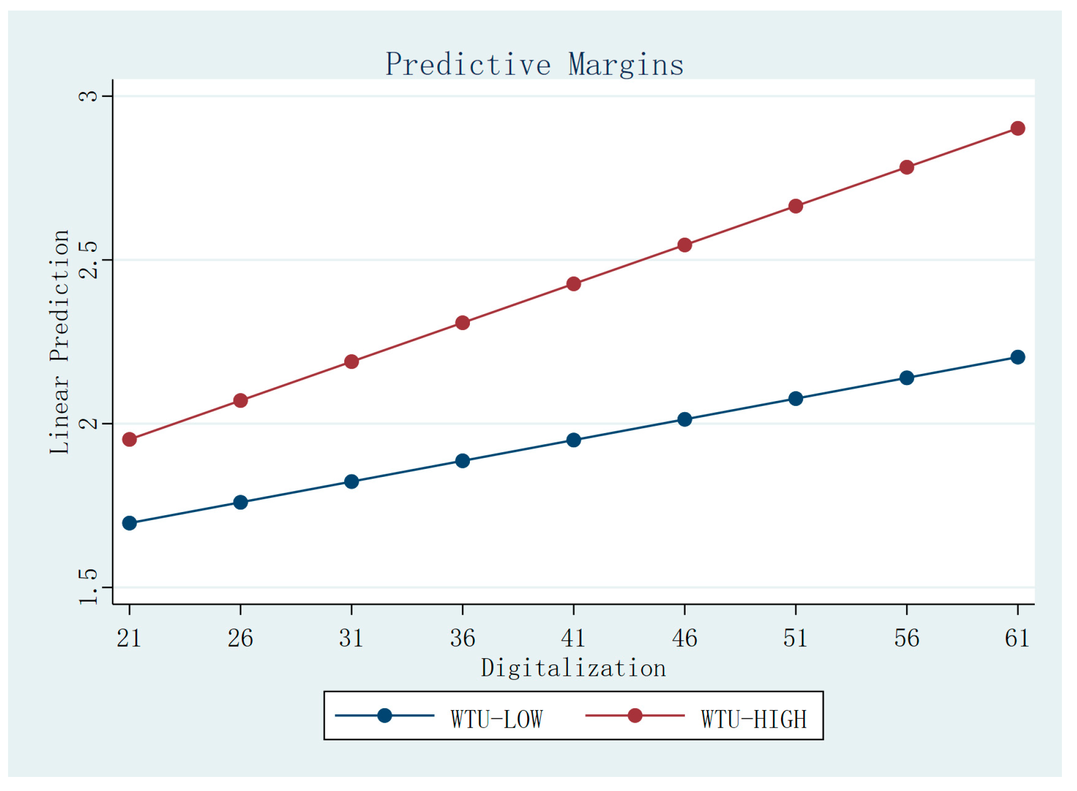 In response, firms often turn to strategies such as friendshoring to balance efficiency and security [6]. In this context, digitalization plays a critical role. They help firms efficiently identify, evaluate, and match with suitable suppliers in new regions, while also assessing local trade policies and potential risks. When WTU is low, firms have little incentive to expand their supplier networks geographically, as disruption risks remain limited. However, as WTU increases, the motivation to use digital tools for supplier diversification grows significantly.