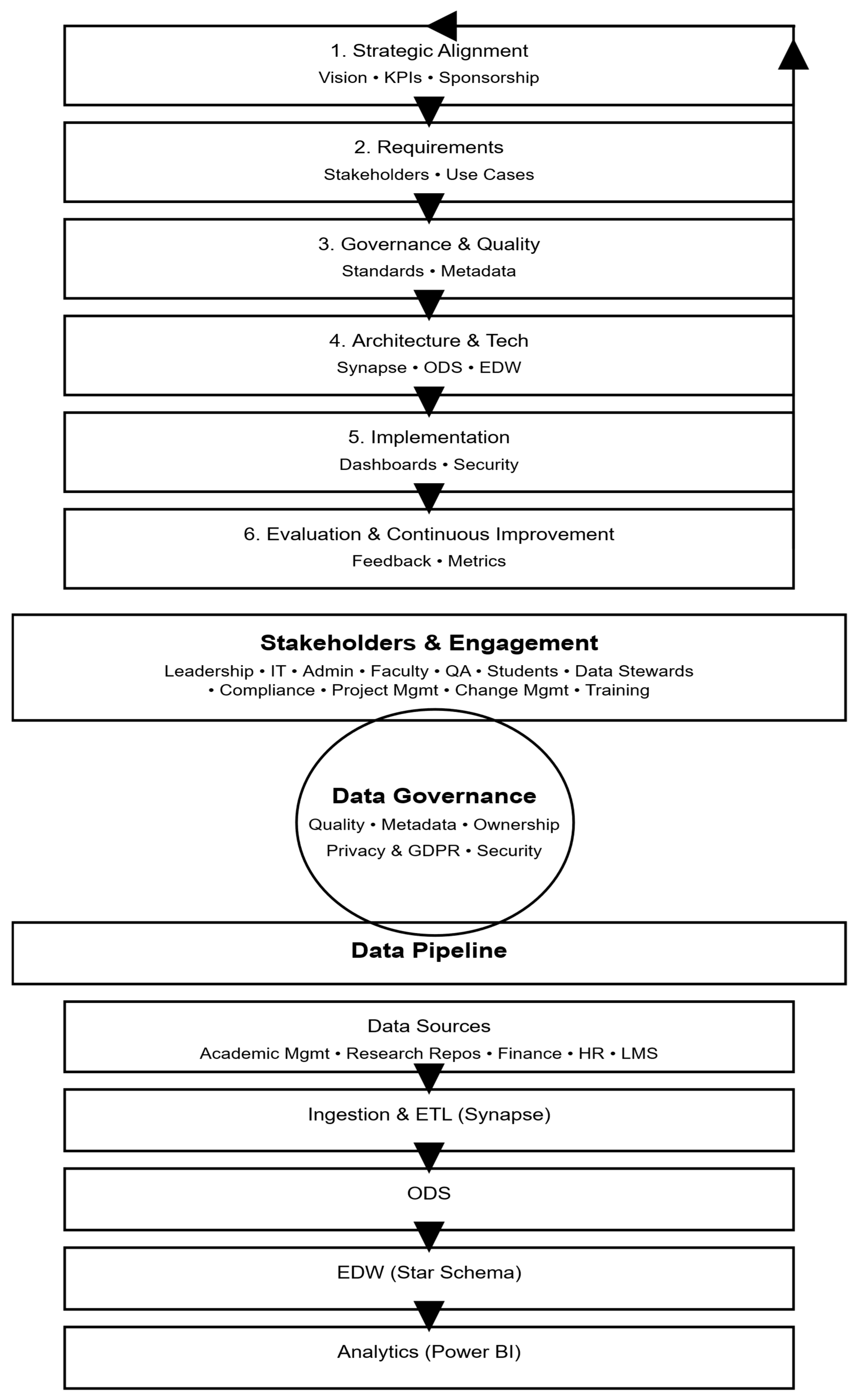 - Multi-Case Studies: Replicating the roadmap in universities with different governance models, cultural contexts and resource levels would provide deeper insights into its generalisability and the contextual factors influencing BI success.