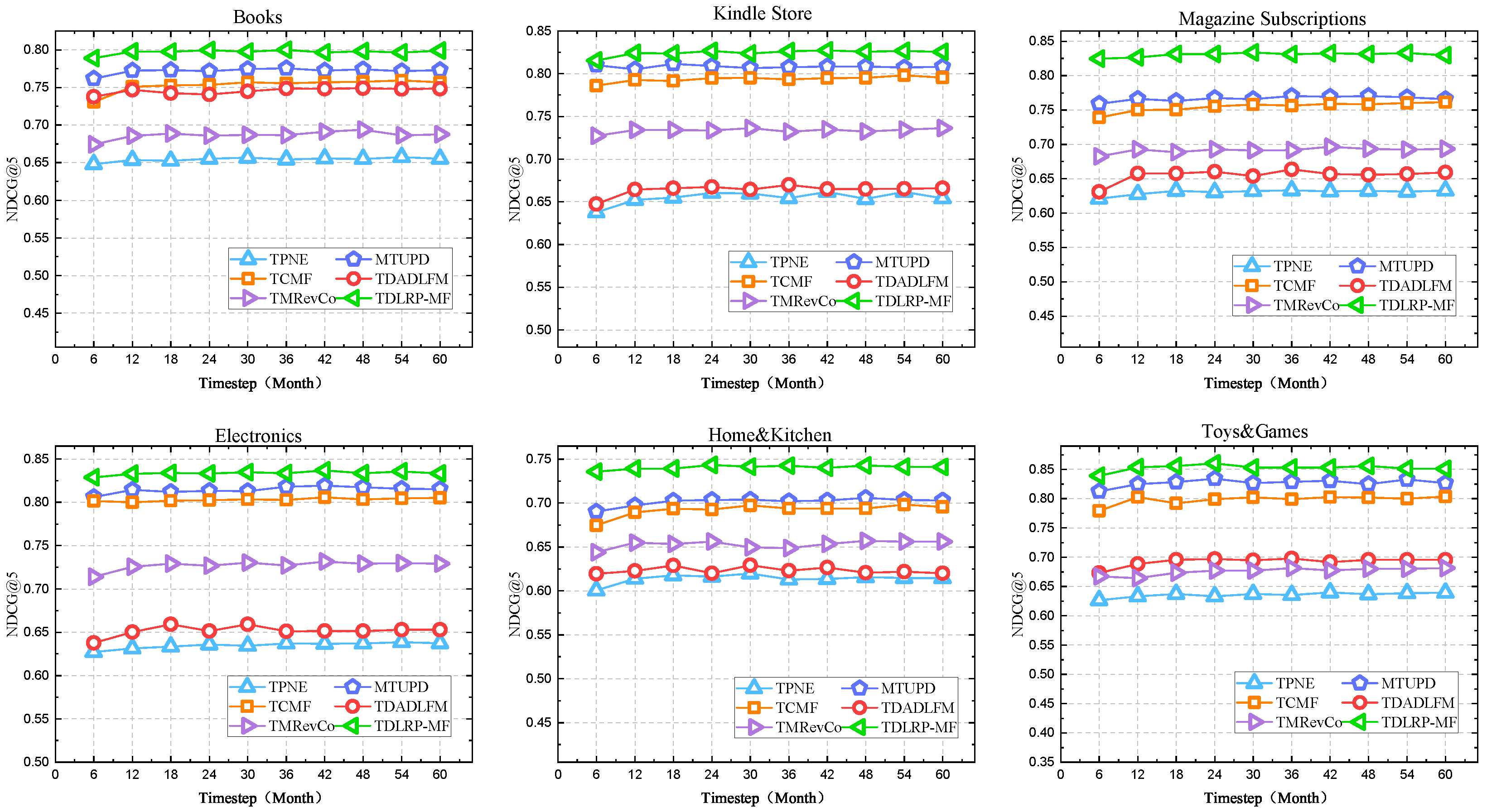 | DataSets/Methods | TPNE | MTUPD | TCMF | TDADLFM | TMRevCo | TDLRP-MF | ||||||