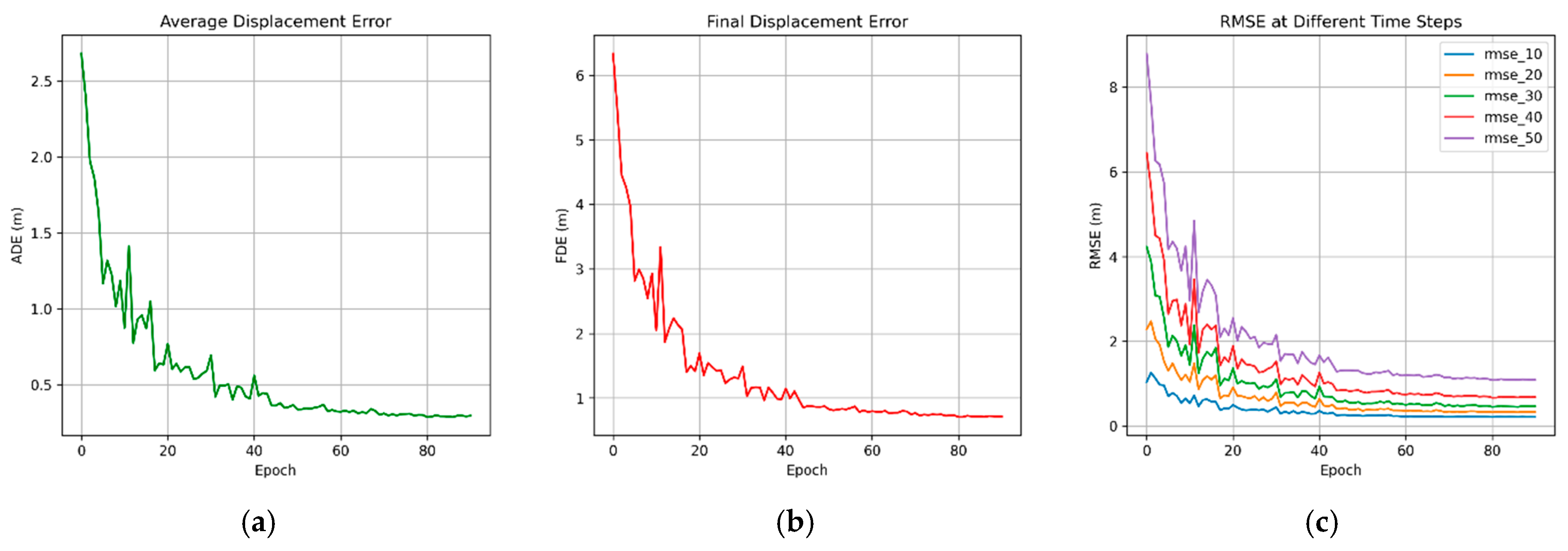 - Zhang, J.; Guo, L.; Wang, G.; Yu, J.; Zheng, X.; Mei, Y.; Han, B. A dual-level graph attention network and transformer for enhanced trajectory prediction under road network constraints. Expert Syst. Appl. 2025, 261, 125510. [Google Scholar] [CrossRef]